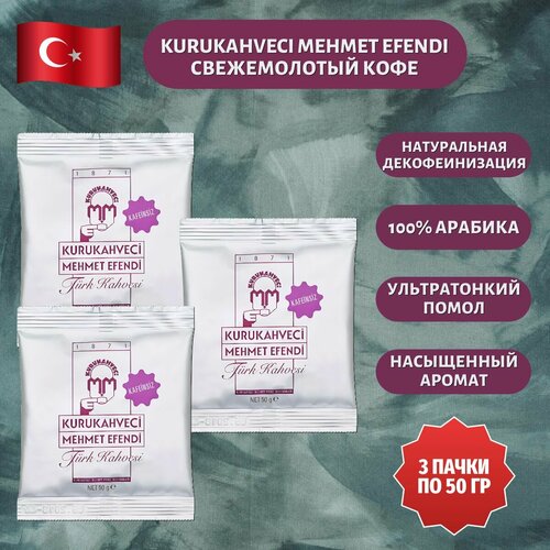 Кофе молотый Kurukahveci Mehmet Efendi DECAF(без кофеина) Арабика 100% в мягкой упаковке 50 гр. 3шт.