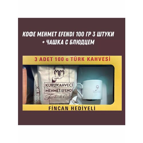 Турецкий кофе MEHMET EFENDI 100 гр 3 шт и чашка с блюдцем