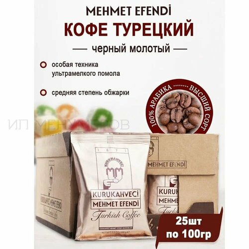 Турецкий кофе молотый Kurukahveci Mehmet Efendi, набор 25 пачек по 100г