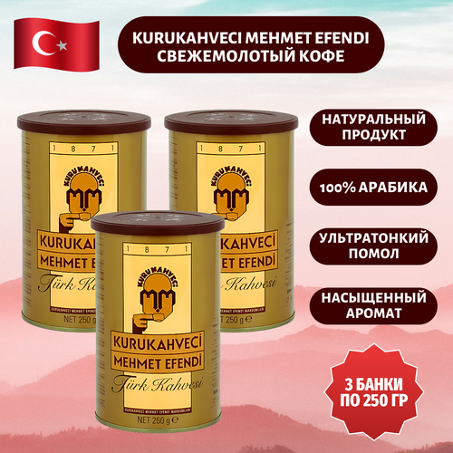 Турецкий кофе молотый KURUKAHVECI MEHMET EFENDI ( мехмет эфенди ), по 250 гр. 3 штуки