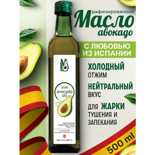 Масло Авокадо 500 мл Рафинированное из Испании, холодный отжим, для салатов, для жарки, для еды, пищевое, LVO