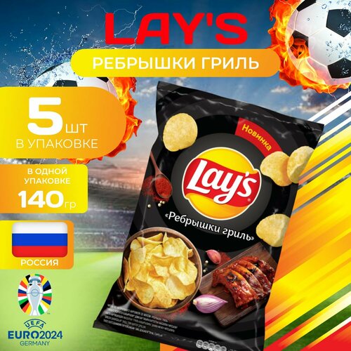 Картофельные чипсы Lays "Ребрышки Гриль" 140 гр. 5 шт. Лейс