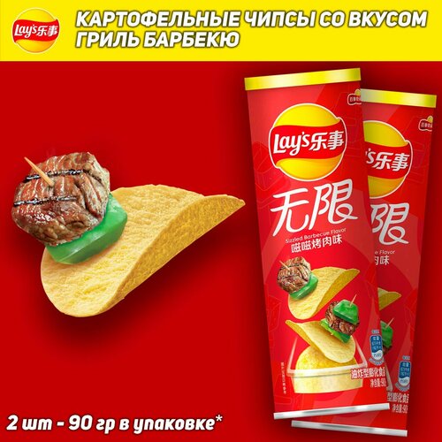 Картофельные чипсы Lays Stax, со вкусом гриль барбекю, 90 гр, 2 шт (Китай)