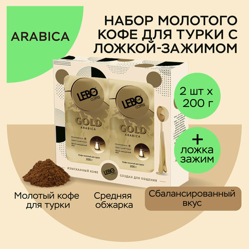 Набор кофе молотый LEBO GOLD 200г для турки -2шт + ложка мерная с зажимом-клипсой