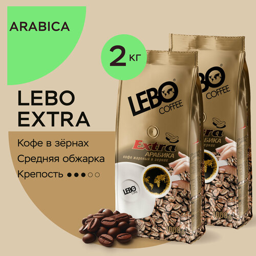 Кофе в зернах 2 кг Lebo Extra Arabica, средняя обжарка, арабика 100%