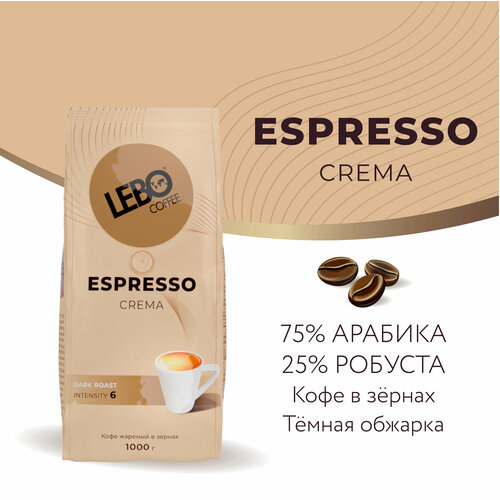 Кофе в зернах LEBO ESPRESSO CREMA, темная обжарка, 1 кг