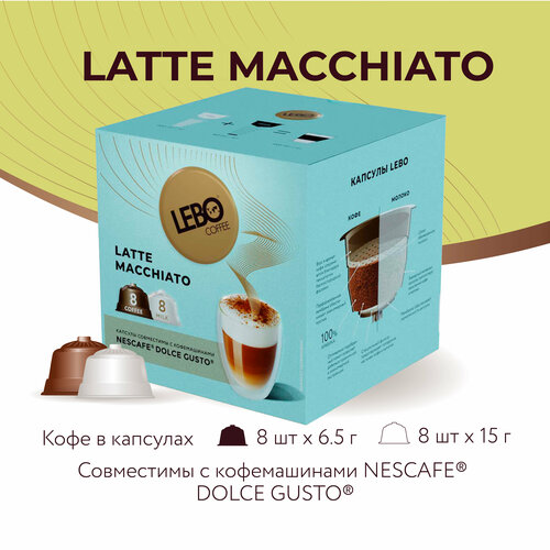 Кофе в капсулах Lebo Latte Macchiato Арабика 100% , 172 г (16 шт), Совместимы с кофемашинами Dolce Gusto
