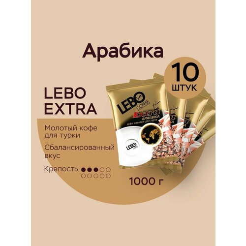 Кофе молотый Лебо 1000 гр. для турки LEBO Extra Арабика, средняя обжарка, (100 г x 10 шт.)