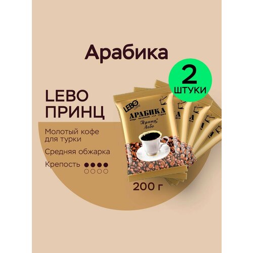 Кофе молотый Лебо 200 гр. для турки LEBO Принц, Арабика, средняя обжарка, (100 г x 2 шт.)