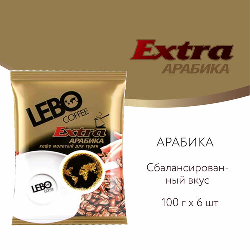Кофе молотый для турки LEBO Extra Арабика, средняя обжарка, 600 г (100 г x 6 шт.)