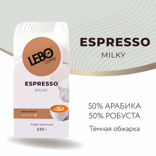 Кофе молотый Lebo MILKY Арабика 50%, Робуста 50% , бленд под молоко Приготовление — универсально, 230 г