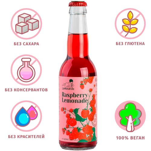Натуральный малиновый лимонад без сахара / Lemonardo Raspberry Lemonade, 330мл.