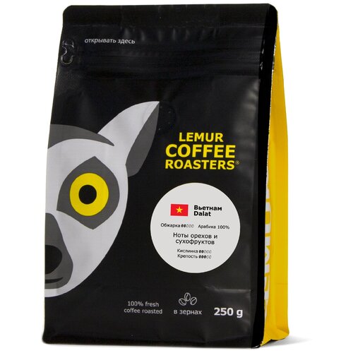 Свежеобжаренный кофе в зернах Вьетнам Dalat Lemur Coffee Roasters, 250 г