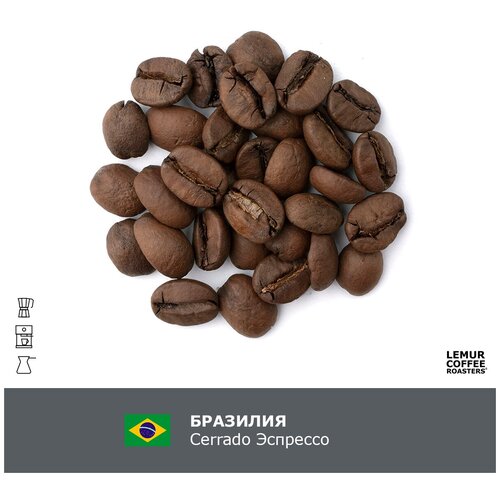 Свежеобжаренный кофе в зернах Бразилия Cerrado Эспрессо Lemur Coffee Roasters, 1кг