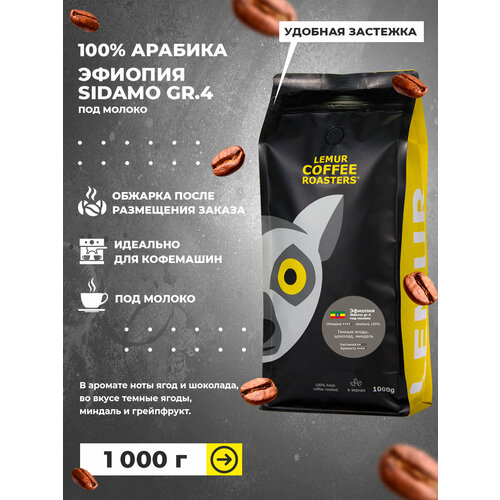 Свежеобжаренный кофе в зернах Эфиопия Sidamo gr.4 под молоко Lemur Coffee Roasters, 1кг
