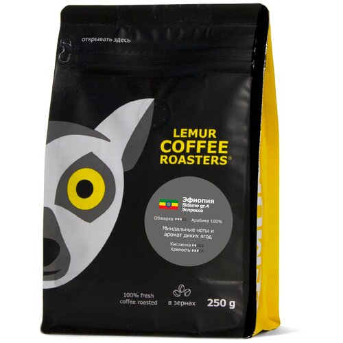 Свежеобжаренный кофе в зернах Эфиопия Sidamo gr.4 Эспрессо Lemur Coffee Roasters, 250 г