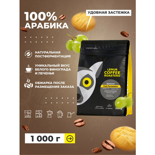 Ферментированный кофе Бразилия Post Fermentino, свежеобжаренный в зернах, Lemur Coffee Roasters, 1 кг