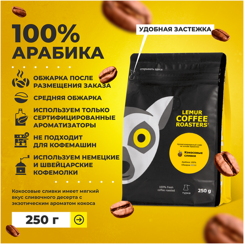 Ароматизированный кофе молотый Кокосовые сливки Lemur Coffee Roasters, мелкий помол, 250 г
