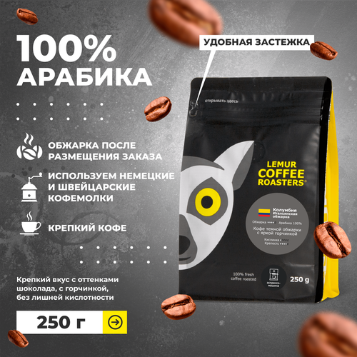 Кофе молотый Колумбия Supremo для гейзерной кофеварки , для мока Lemur Coffee Roasters, 250 г