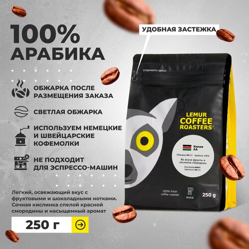 Кофе молотый Кения AА для гейзерной кофеварки , для мока Lemur Coffee Roasters, 250 г