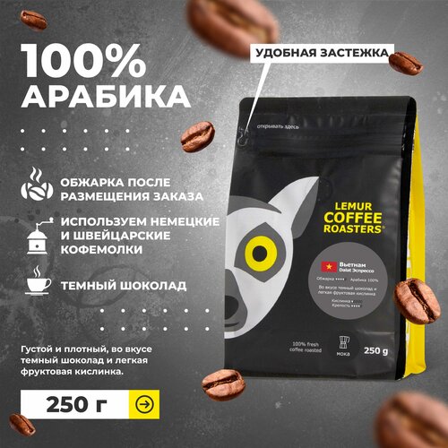 Кофе молотый Вьетнам Dalat Эспрессо для гейзерной кофеварки , для мока Lemur Coffee Roasters, 250 г