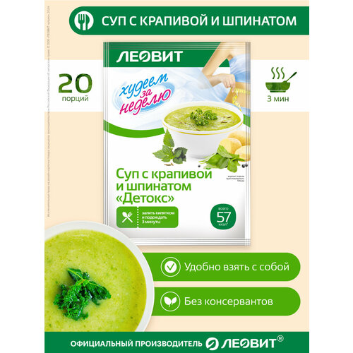 Суп-пюре с крапивой и шпинатом для детоксикации 20 шт 20 гр Худеем за неделю ЛЕОВИТ для похудения быстрого приготовления