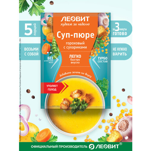 Суп-пюре гороховый с сухариками диетический 5 шт по 30 г Худеем за неделю от леовит для похудения быстрого приготовления