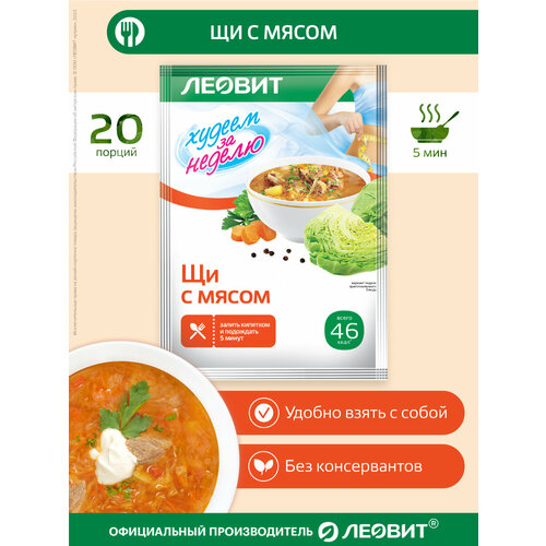 Щи с мясом диетические 20 шт по 20 гр Худеем за неделю от ЛЕОВИТ для похудения суп быстрого приготовления в пакетиках