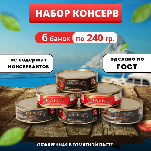 "Килька Каспийская" — килька в томатном соусе от "Лиги Вкуса" 3 банки по 240 грамм