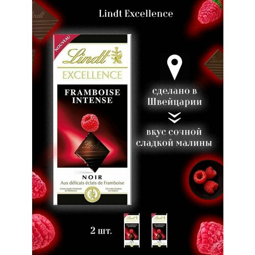 Шоколад плиточный темный Линдт Экселленс с Малиной, 2 шт. по 100 г, Lindt Excellence