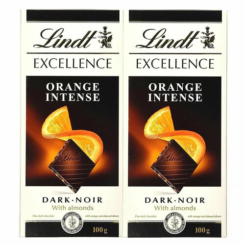 Шоколад темный с апельсином и кусочками миндаля Lindt Excellence ORANGE INTENSE 2 шт х 100 гр (Франция)