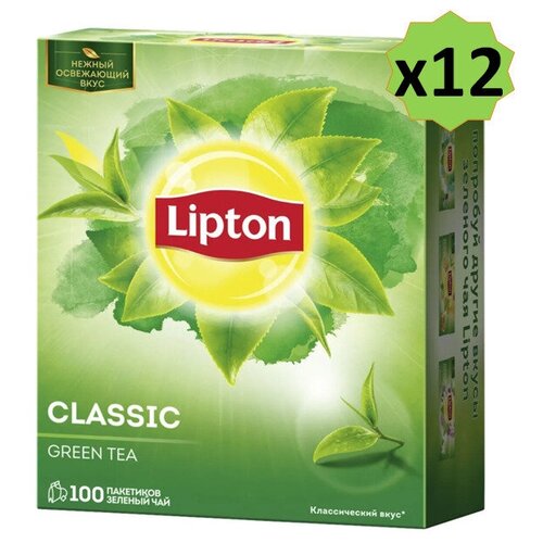 Чай зеленый Lipton Green Classic Липтон зеленый классический, 12 упаковок по 100 пакетиков