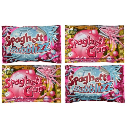 Жвачка Lutti Spaghetti Gum Bubblizz Tutti Frutti спагетти розового + голубого цвета (4 шт. по 35 гр.)