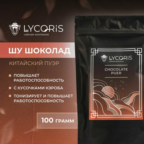 Шоколадный Шу Пуэр (4х-летний) (chocolate puer) среднелистовой Китайский четырехлетний чай, 100 гр. LYCORIS (Правильный, настоящий), Классический Хороший pu er со Вкусом Шоколада, Бодрящий