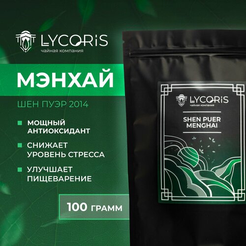 Шен пуэр (г. Мэнхай) 2014 г. среднелистовой Китайский чай, 100 гр. LYCORIS (Правильный, настоящий), Классический Хороший pu er, Бодрящий