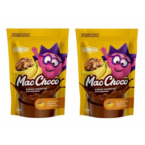 Какао напиток растворимый MACCHOCO Смешарики со вкусом банан-печенье 235 г х 2 шт