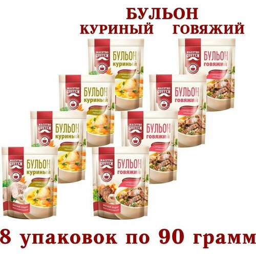 Бульон сухой ассорти — куриный/говяжий — "Maestro Gusten" — 8 упаковок по 90 грамм.