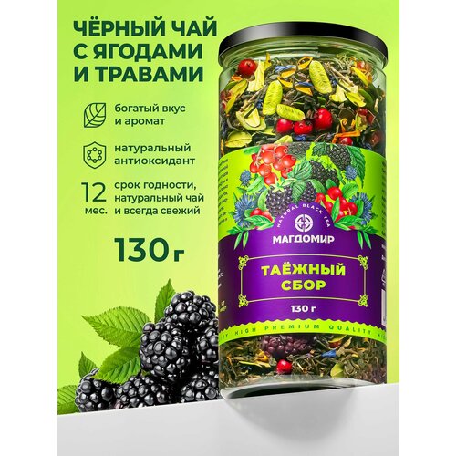 Таежный сбор чай черный листовой 130 г, чай ягодный с добавками