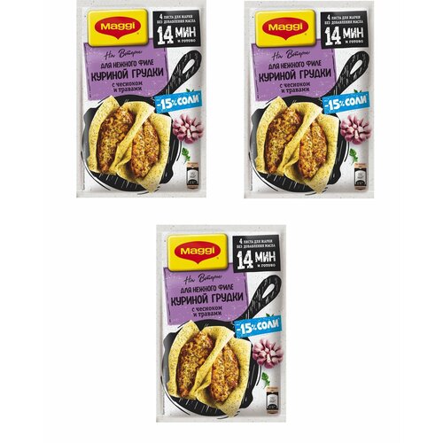 Магги на Второе. Смесь на бумаге для жарки для приготовления нежного филе куриной грудки с чесноком и травами 30.6 г, 3 шт