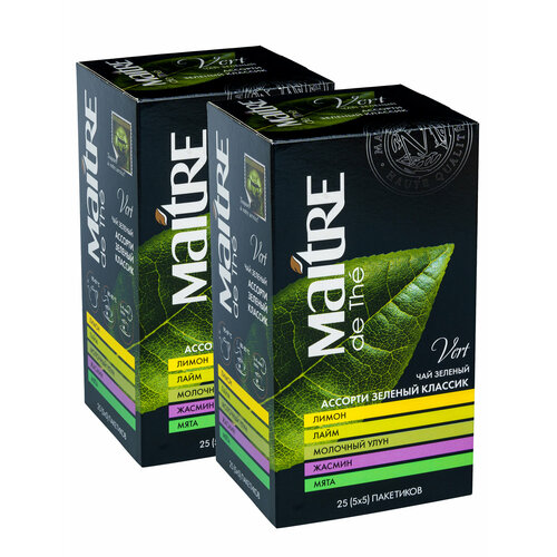 Чай зеленый в пакетиках ассорти Maitre de The классик лимон, лайм, жасмин, мята 2 шт х 50 г, 50 шт мэтр молочный улун
