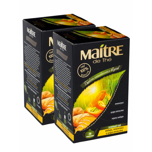 Чай зеленый в пакетиках Maitre de The имбирь, лемонграсс, цедра апельсина, 2 шт х 40 г, 40 шт мэтр