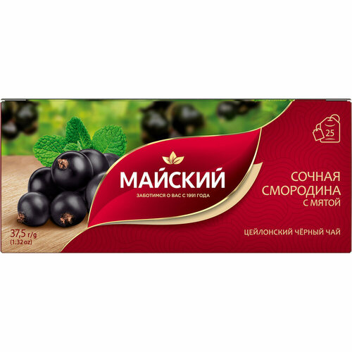 Майский Чай в пакетиках Смородина с мятой черный, 25 пакетиков, 3 шт