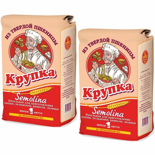 Мука Семолина/ Semolina из твердых сортов пшеницы (Крупка), 1 кг*2 шт