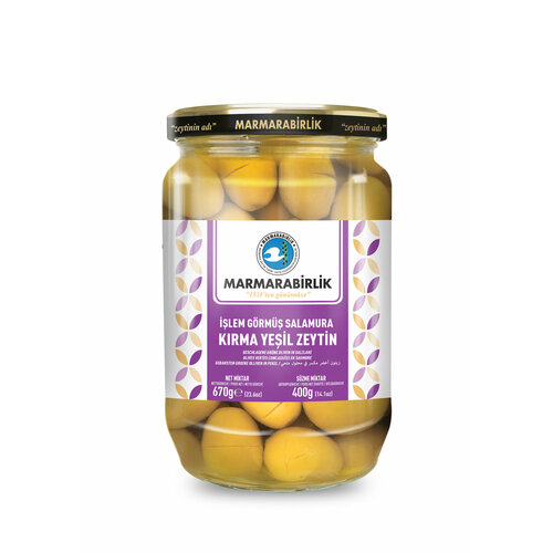 Оливки зеленые MARMARABIRLIK KIRMA 4XL (141-160), ломаные, с косточкой, в рассоле, ст/б, нетто 710 г