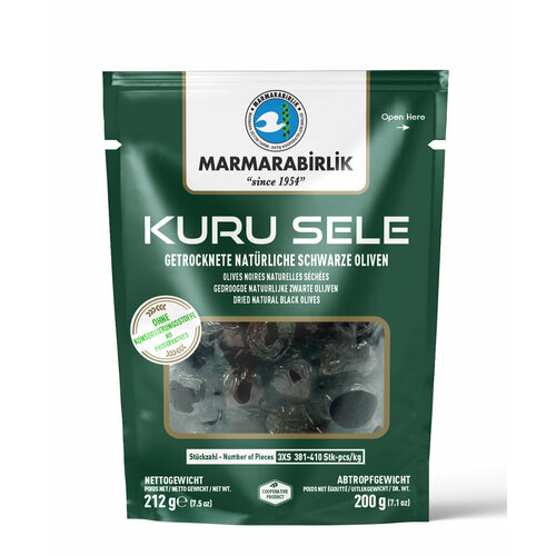 Оливки вяленые черные натуральные с косточкой KURU SELE LUX 3XS MARMARABIRLIK 200 г, дой-пак.