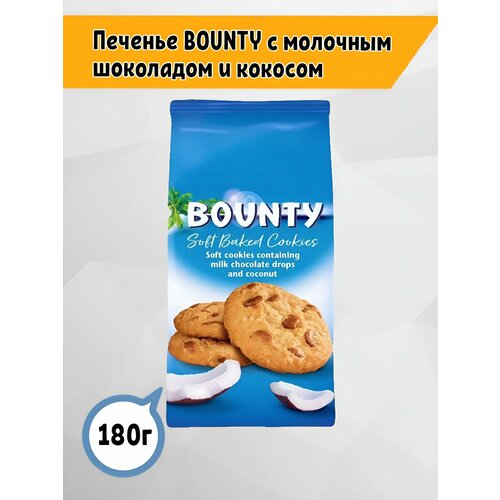 Мягкое печенье Bounty, c кусочками молочного шоколада и кокосом, ( 2 шт по 180 г)
