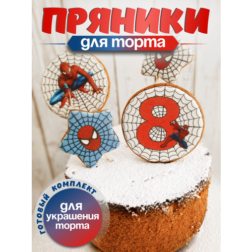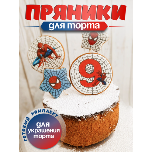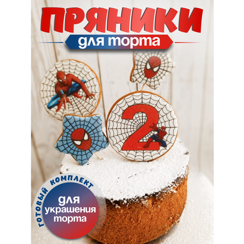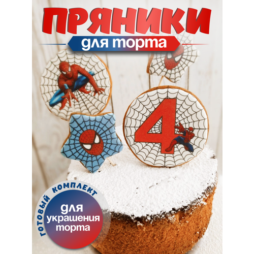 Имбирные Пряники Masha Sasha "Человек-Паук- цифра 5", для торта, с глазурью