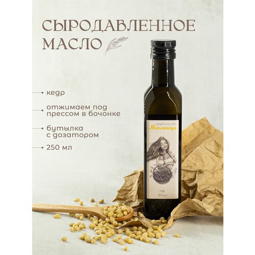 Сыродавленное кедровое масло "Маслиница" 0.25 л, холодного отжима, пищевое
