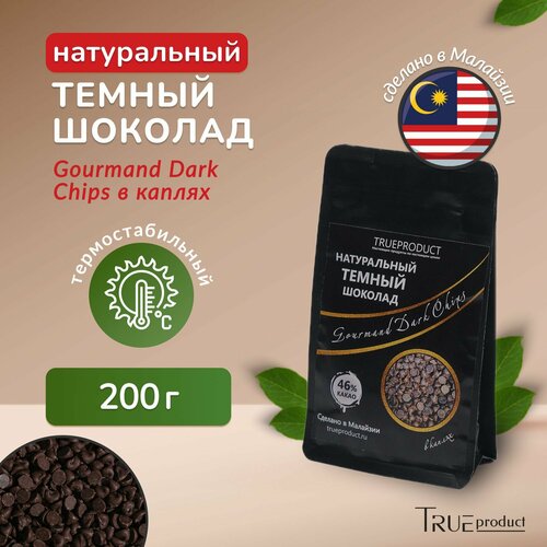 Темный шоколад Gourmand Dark Chips 46% кондитерский в форме капель, 200 гр