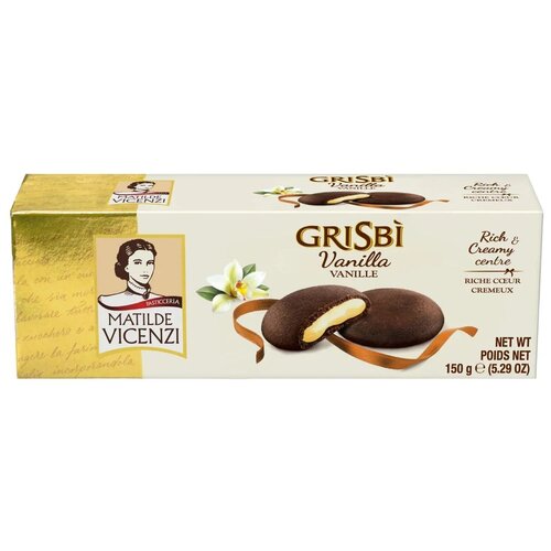 Печенье Grisbi Vanilla с тёмным шоколадом с начинкой со вкусом ванили, 150г